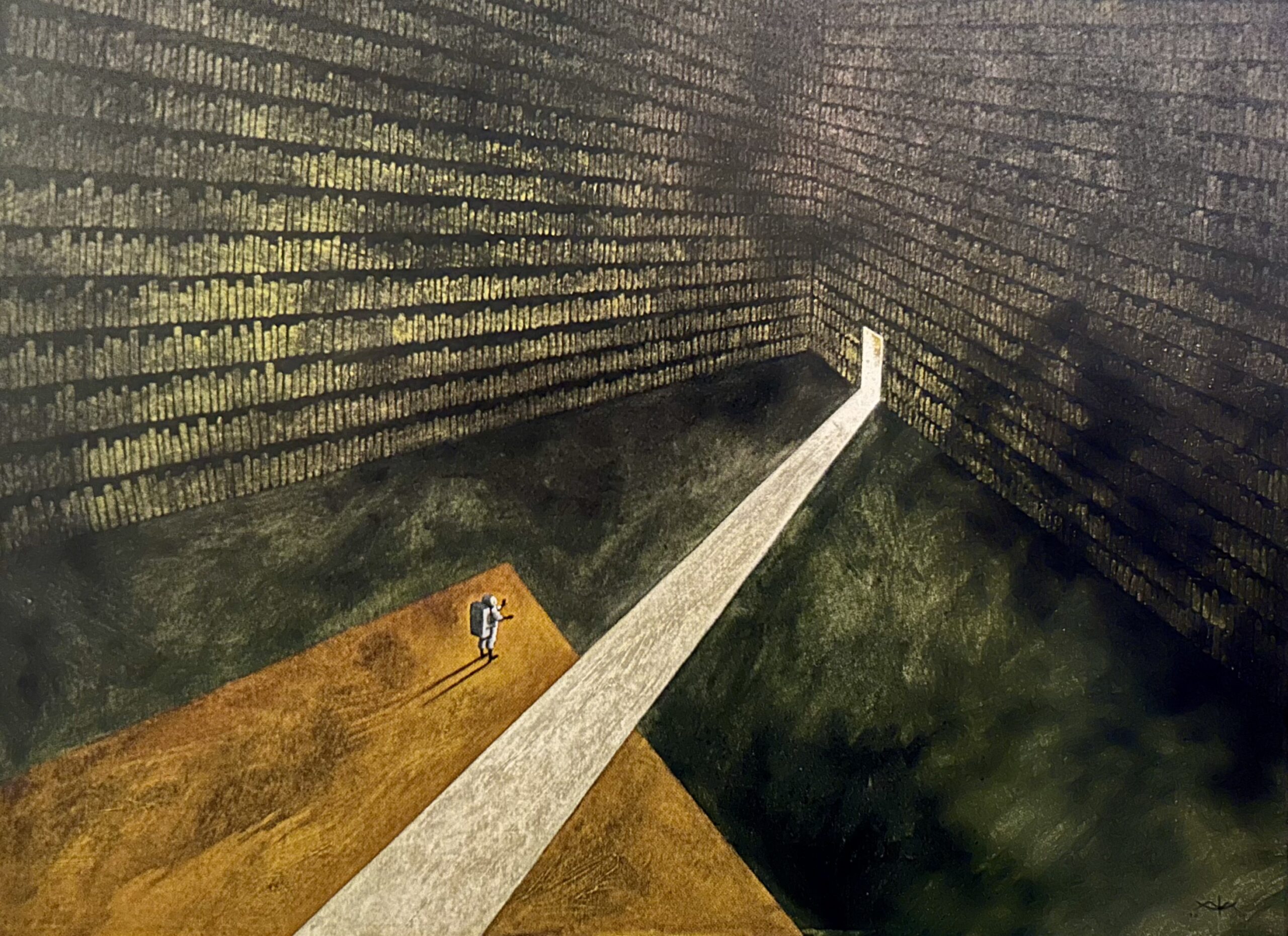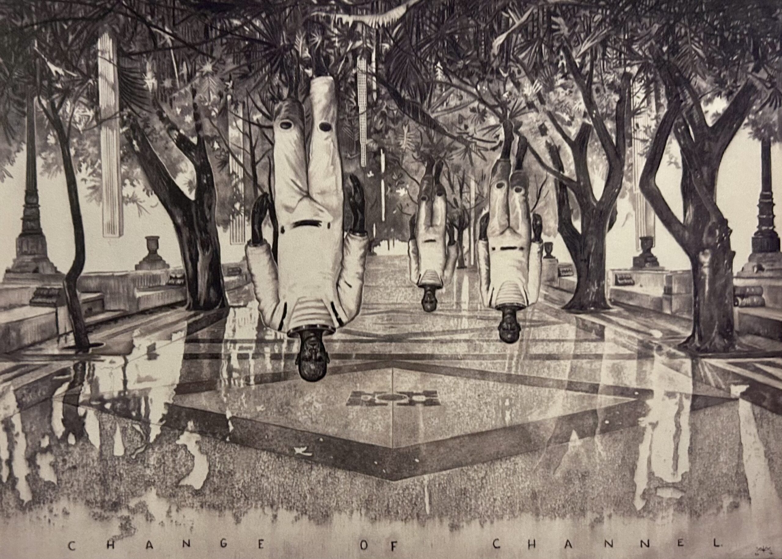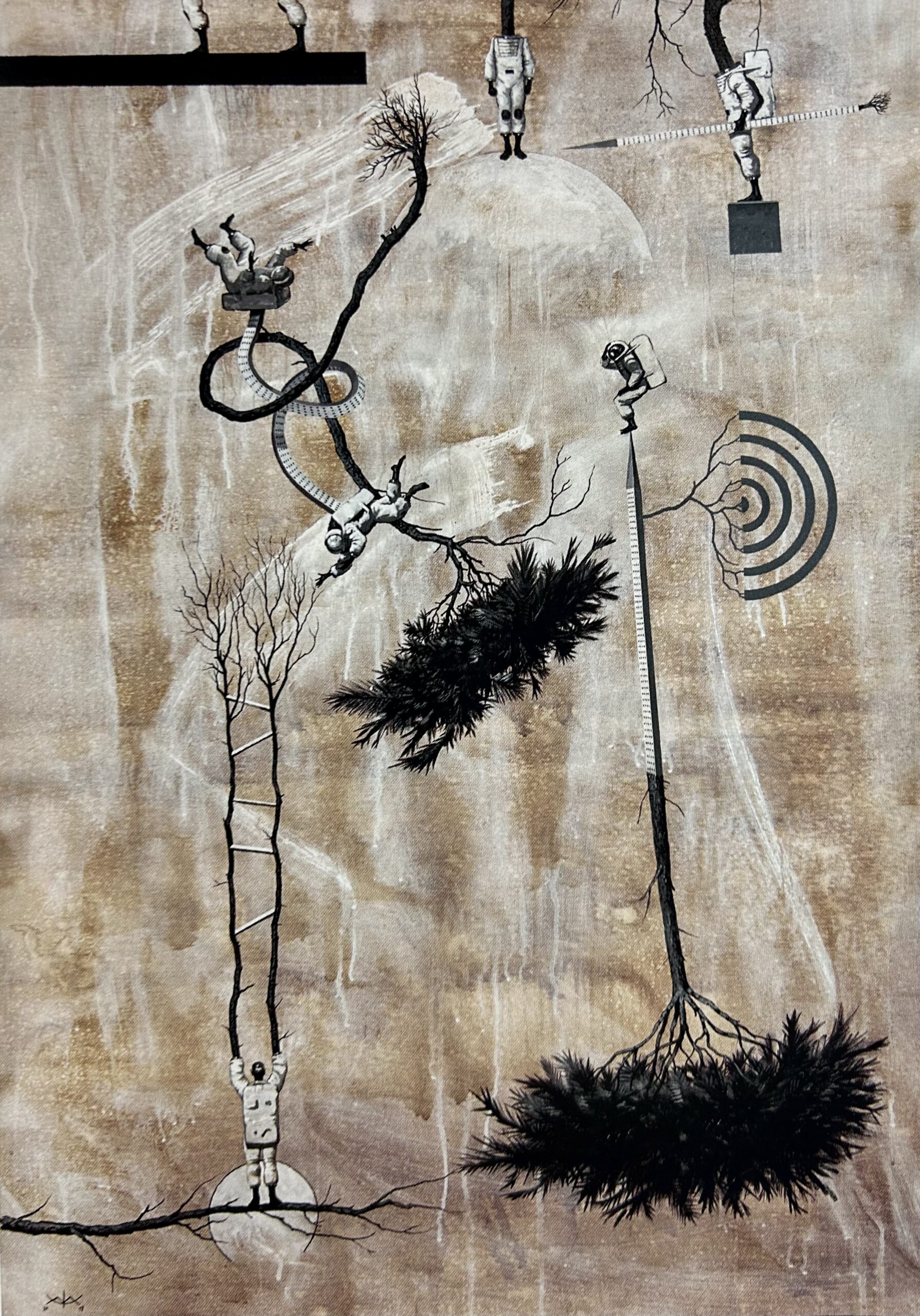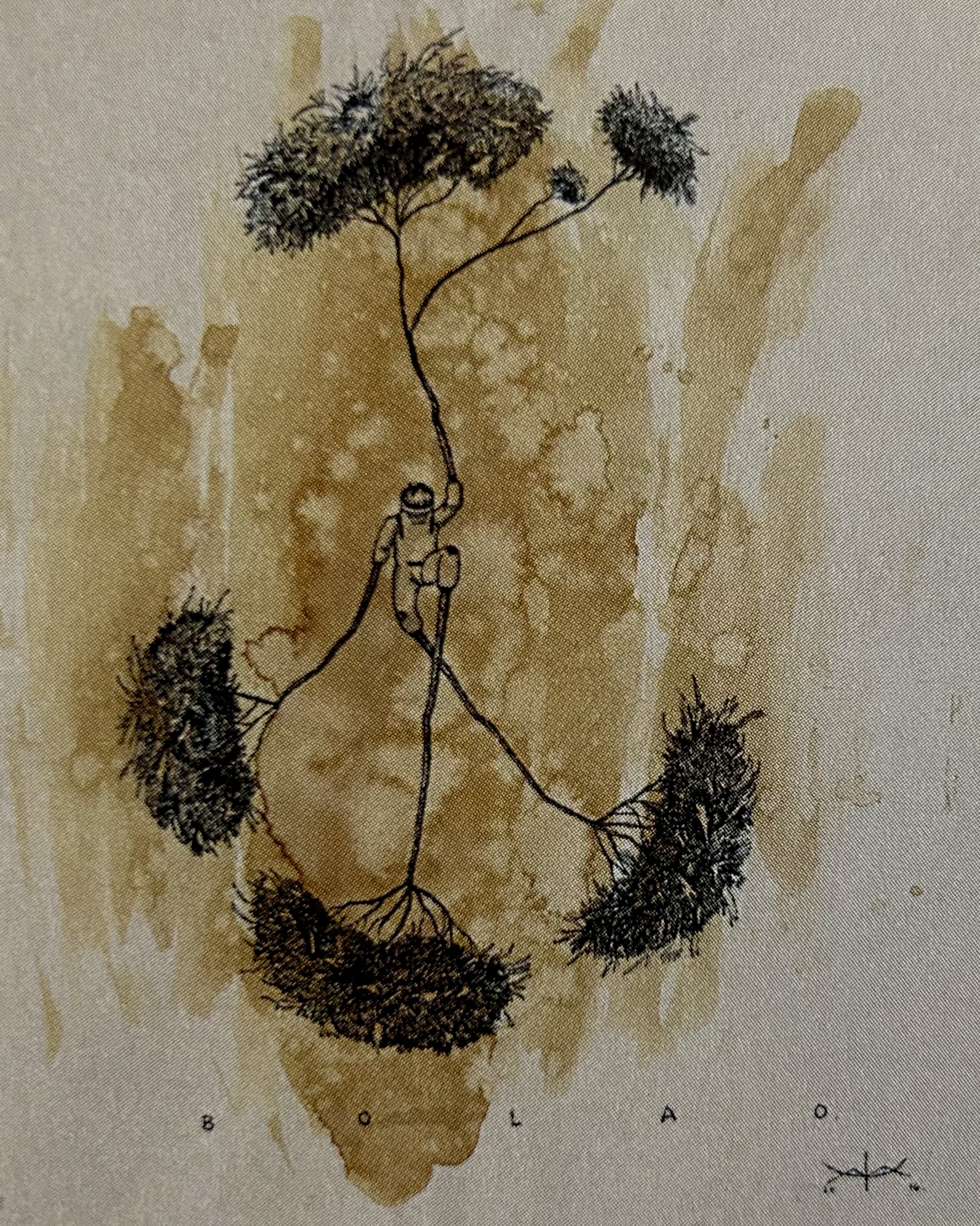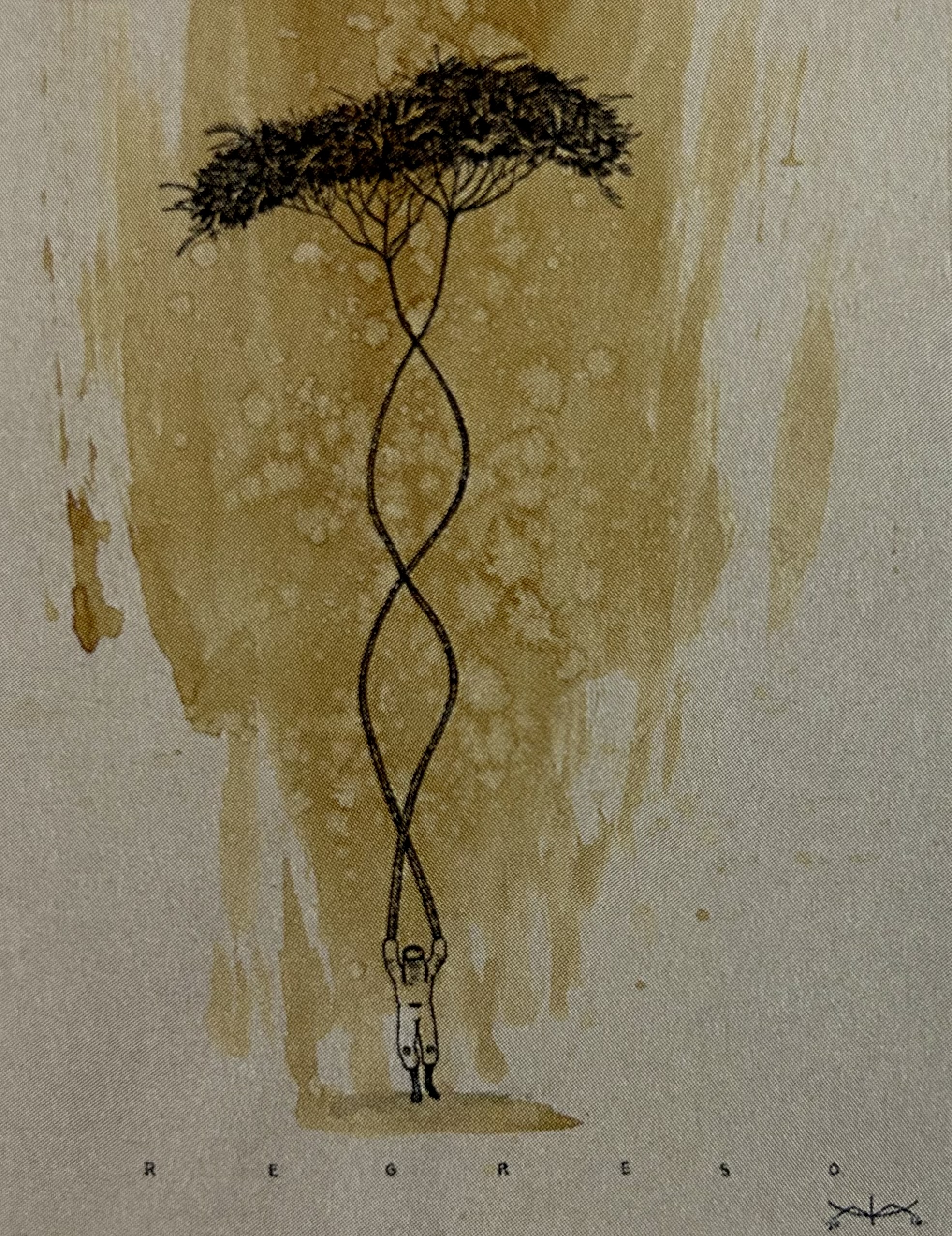 En su centro, un columpio habitado por un cuerpo solitario invita al vuelo y al vértigo.
