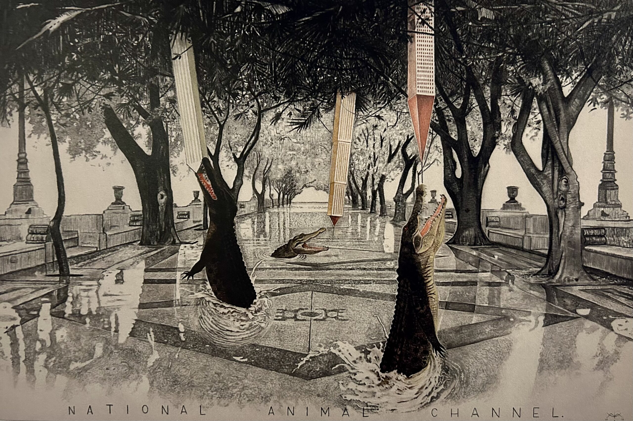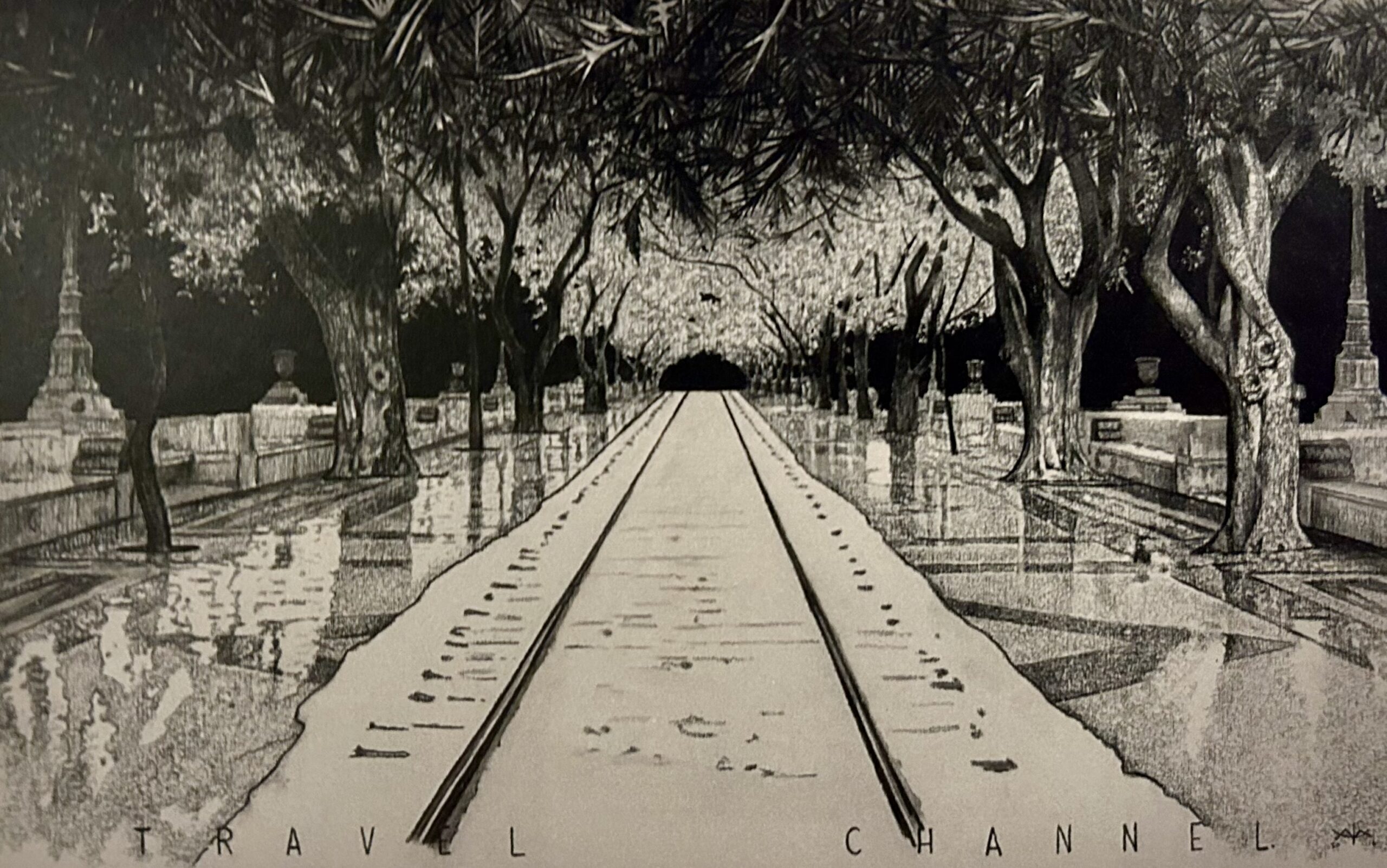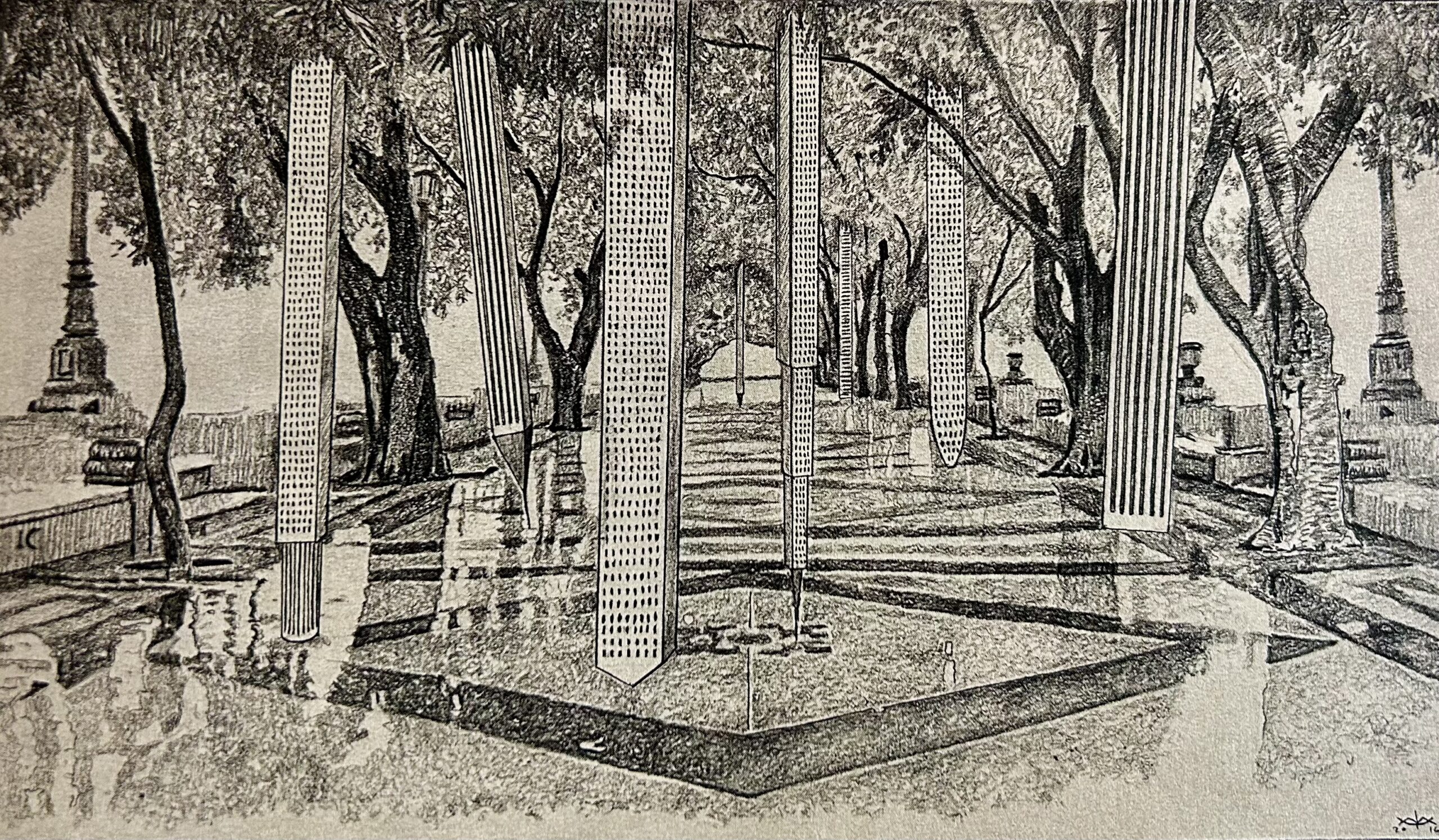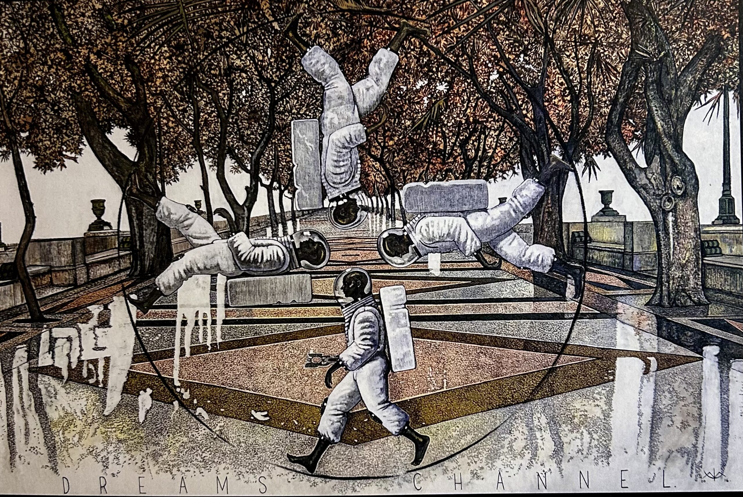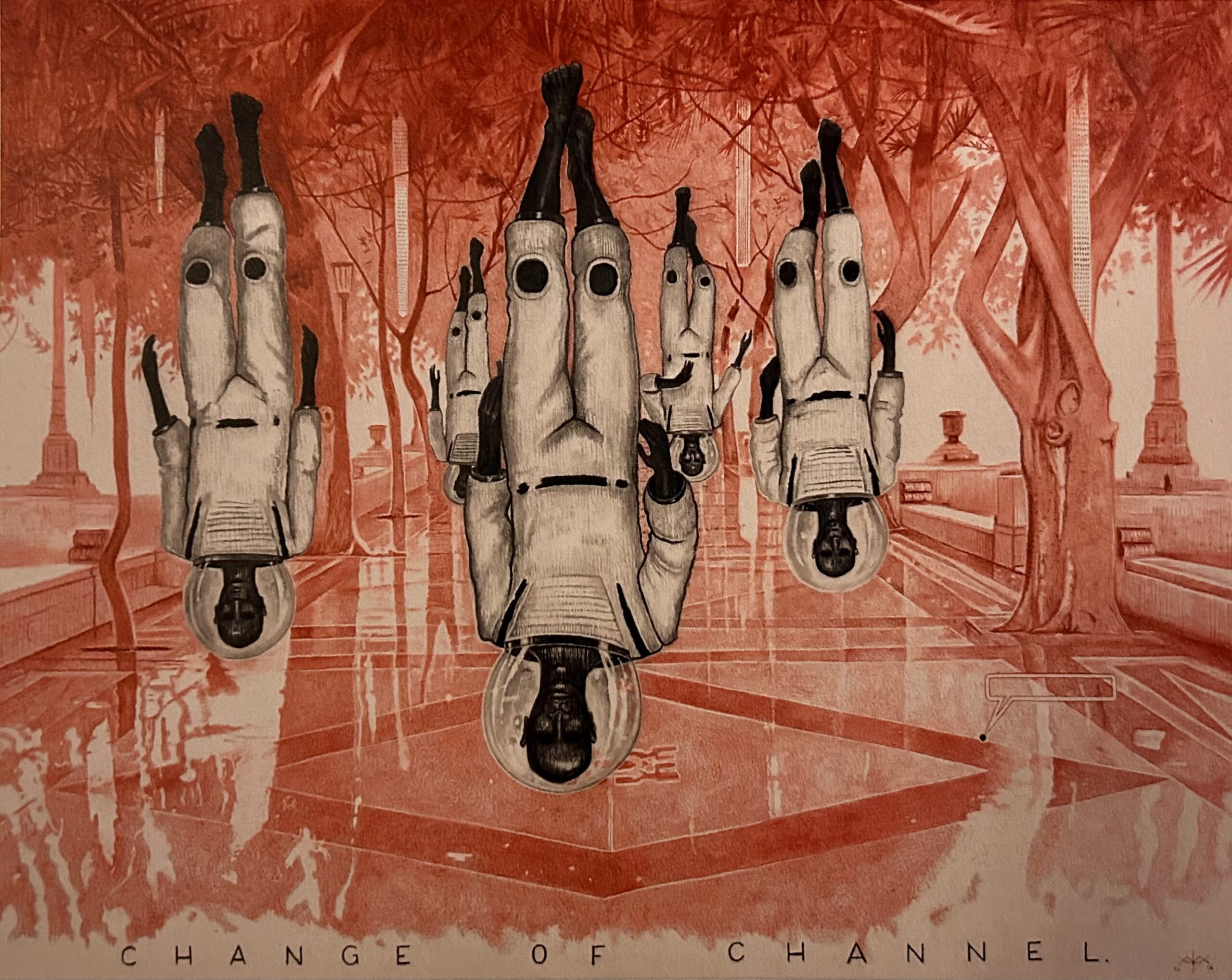 En su centro, un columpio habitado por un cuerpo solitario invita al vuelo y al vértigo.